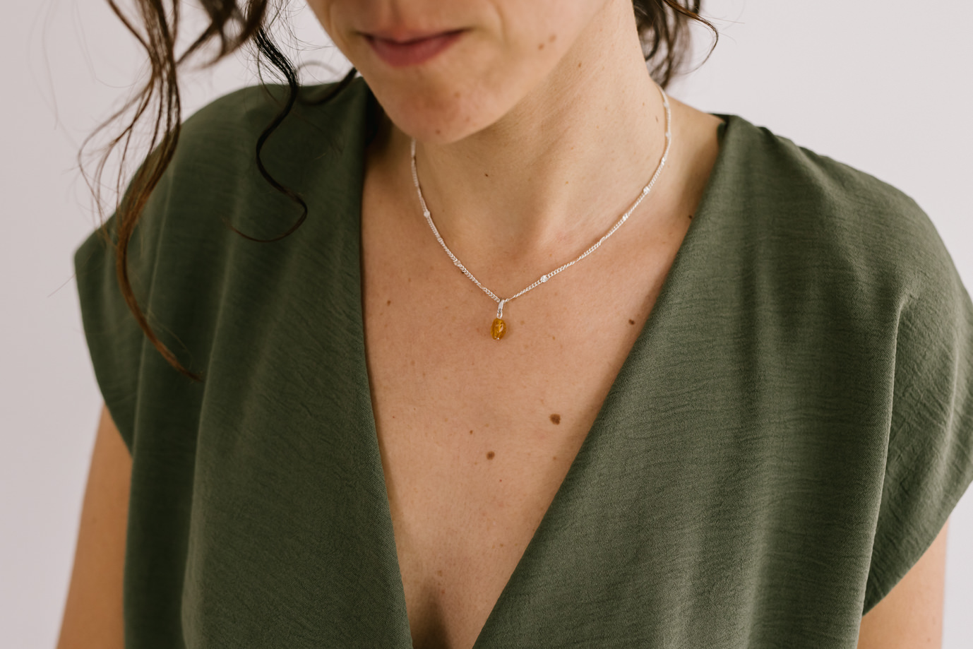 IMPORTANTE: Esta pieza no incluye cadenita, tan sólo el charm con la piedra. Puedes utilizarlo aprovechando alguno de los collares que tengas en casa o combinarlo con alguno de nuestros collares de cadenita como los collares Río y Casiopea, que se venden a parte.