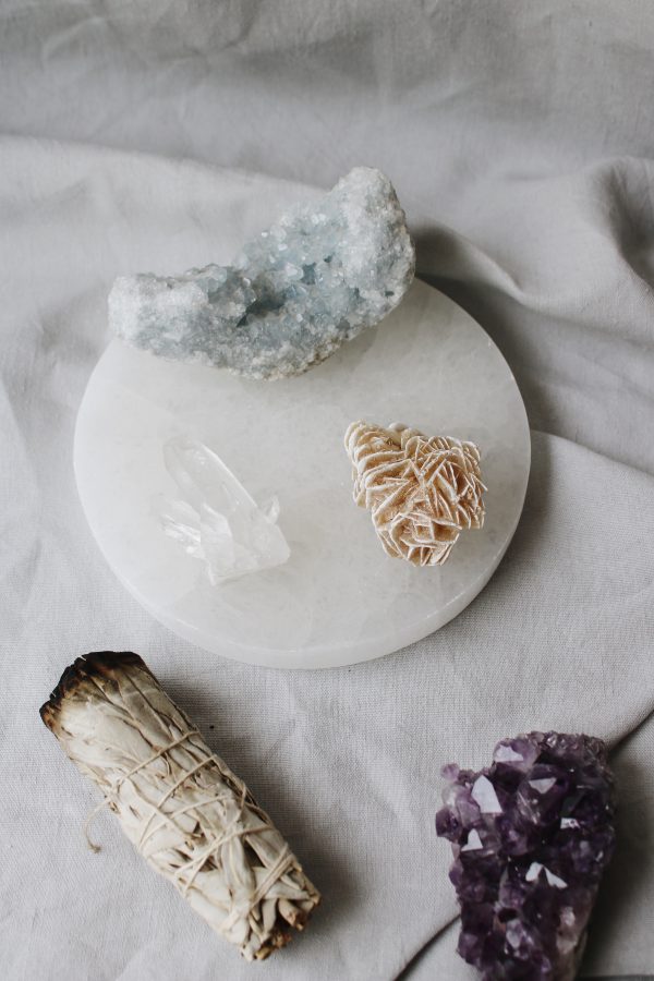 Nuestros platos de Selenita natural te servirán para limpiar y recargar la energía de tus minerales.
