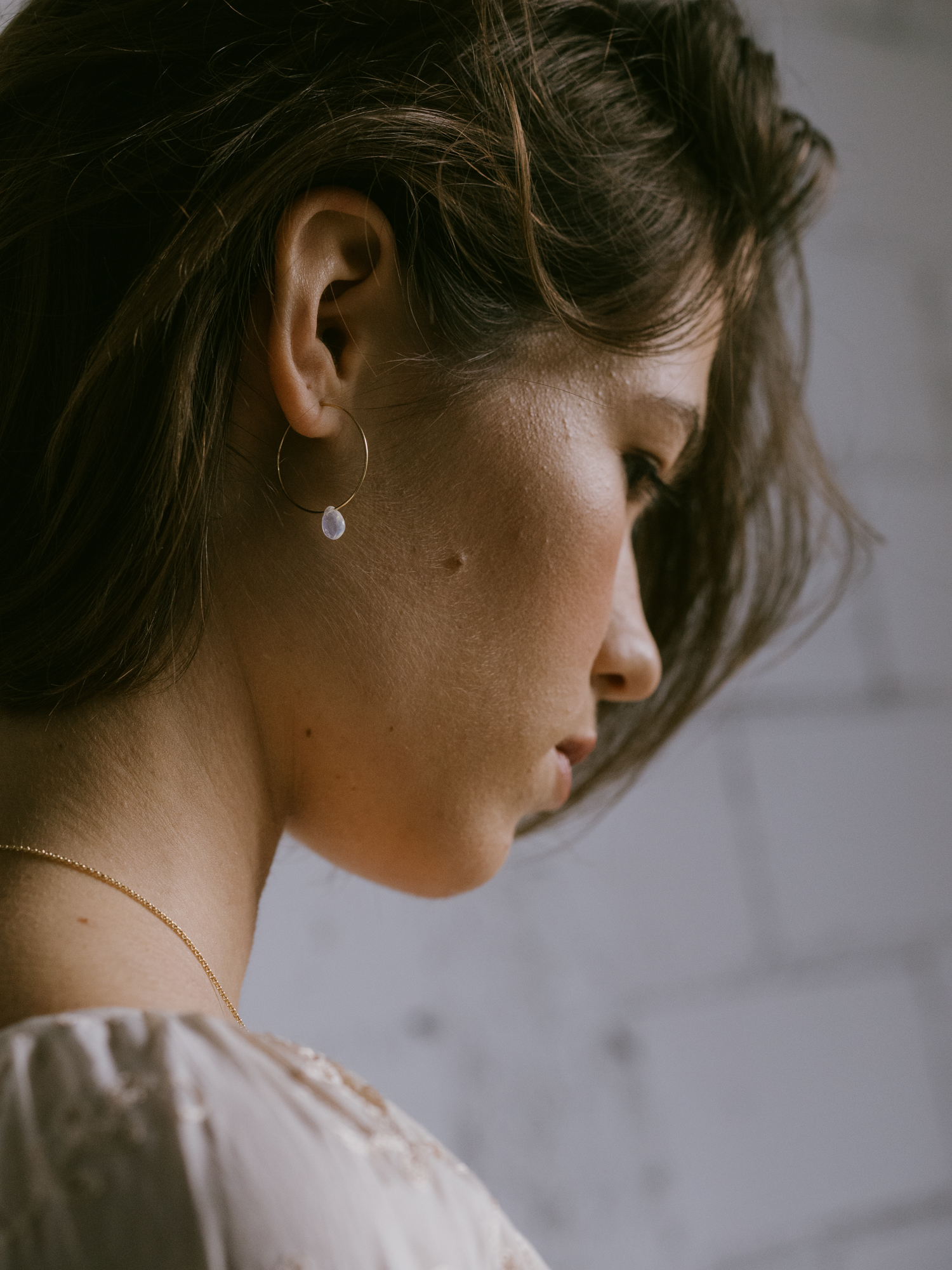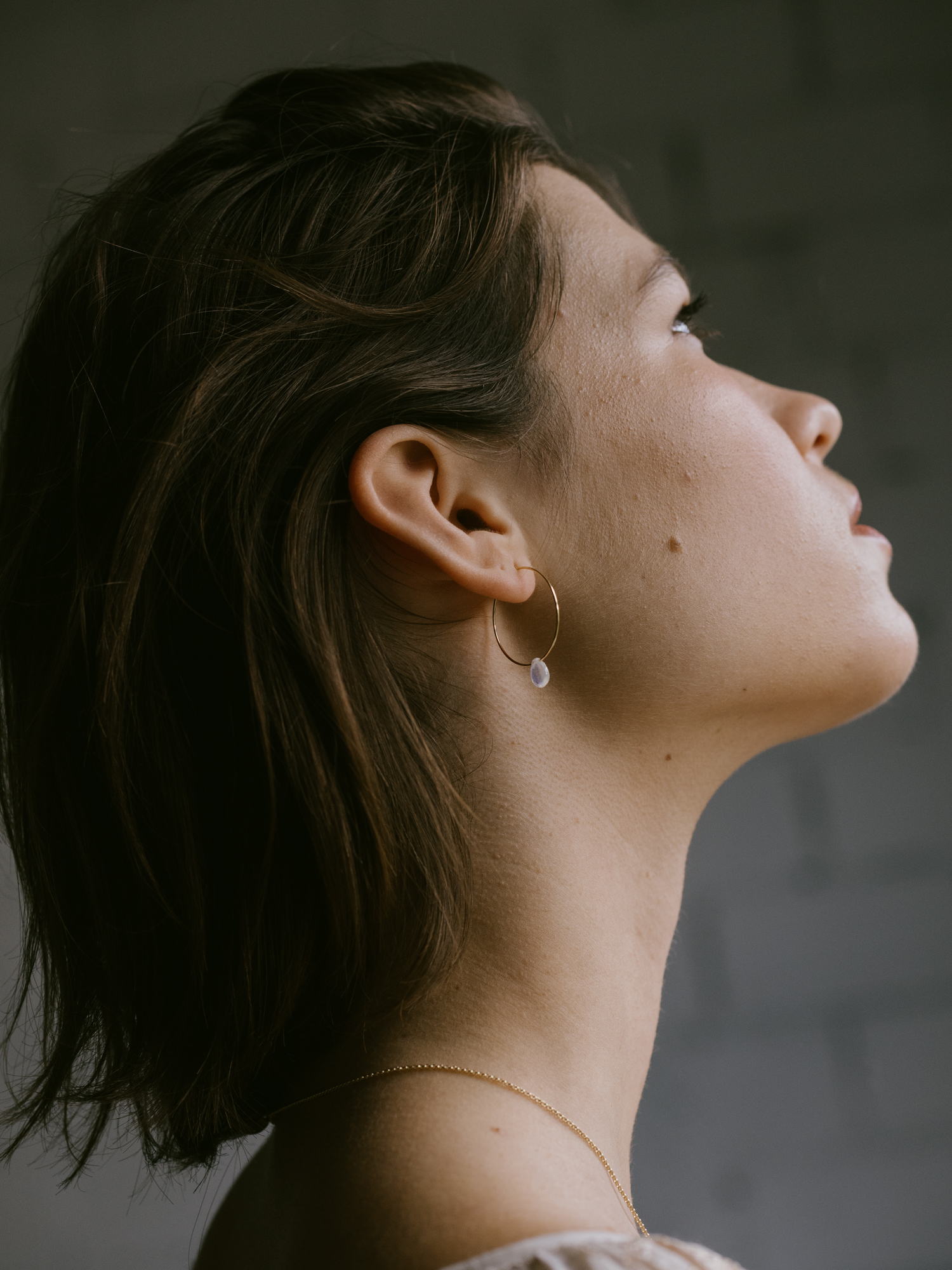 El alma de estos pendientes son unas pequeñas lágrimas de mineral talladas a mano en un diseño sencillo y delicado. Para realizarlos hemos seleccionado nuestras piedras semipreciosas favoritas, para que puedas elegir la que más resuene contigo, más abajo puedes ver sus propiedades.