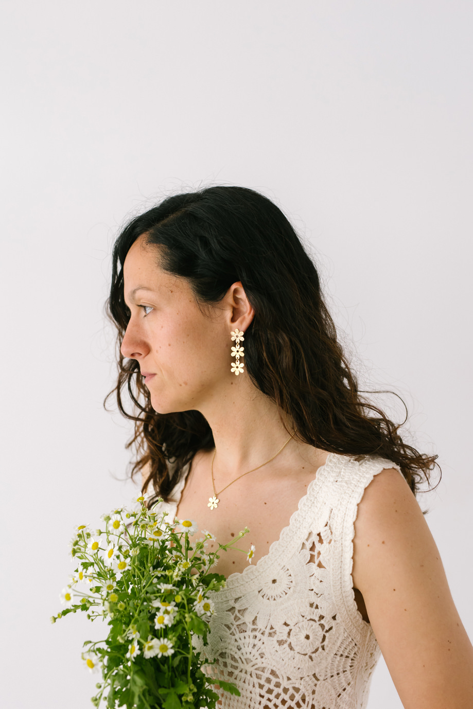 Dentro de la colección también encontrarás otros diseños de pendientes con la misma flor como protagonista: los pendientes de aro Brisa y los pendientes con piedras naturales Néctar y los sencillos Flor.